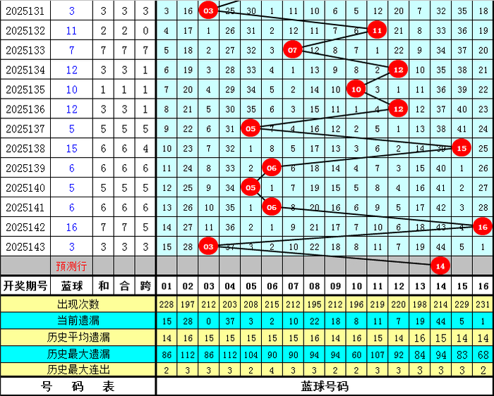 蓝球分析:前5期蓝球号码分别开出:06、05、06、16、03,其中偶数蓝球开出了3次,出现比例较高,本期预计蓝球再出偶数,参考蓝球号码14。