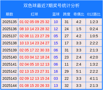 上期开奖号码的红球跨度为32,奇偶比3:3,012路比为2:1:3。