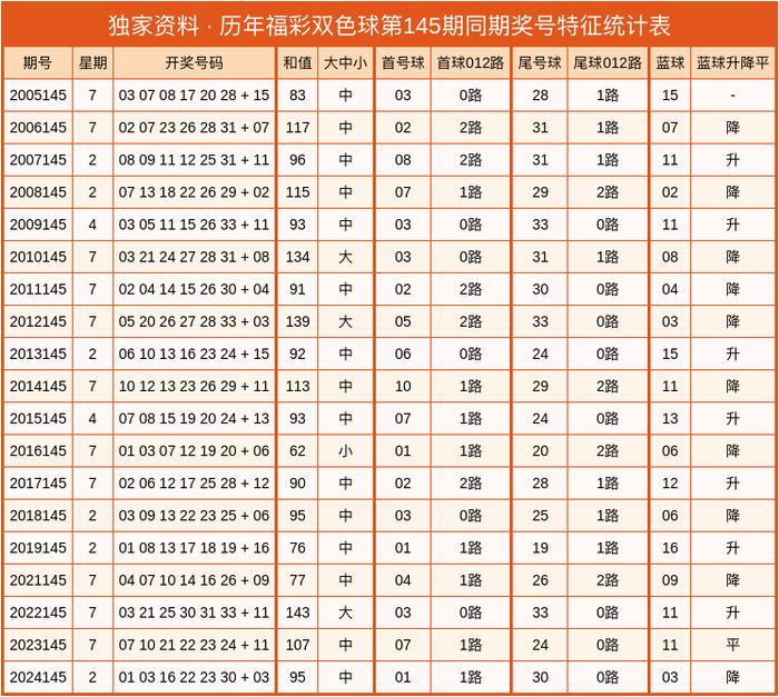 和值:去年同期和值开出95,形态呈现为中数。对历史同期中的和值大中小形态进行统计,我们发现:中数开出15次、大数开出3次、小数开出1次。本期更看好【中数】和值开出,参考和值在85左右。