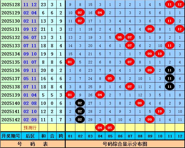 后区分析:上期后区开出号码02和09,最近10期后区奖号奇偶比为13:7,大小比为13:7,本期后区看好号码02、04、05、06、08,后区单挑两码04、05。