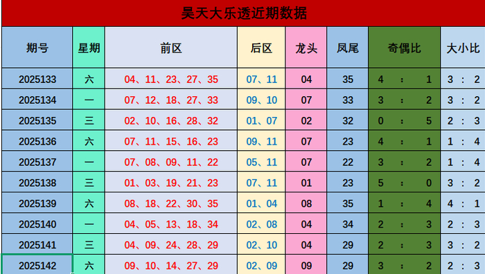 上期后区中奖号码为02 09,近10期后区综合奇偶比13:7,奇数出号占优,本期推荐偶奇组合04,07。