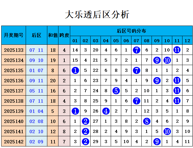 前区0路分析:前区0路号码上期开出2个号码09、27,前十期断区1次,前十期0路开出16个号码,走势较冷;本期预测0路号码走势降温,本期看好出1个0路奖号,关注号码:03